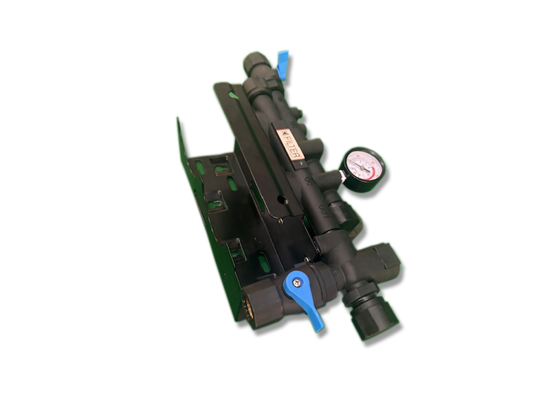 Dual Head (DHW1) series online parallel wall-mounting filter head is designed to be best suitable for commercial water purification systems. Our dual cartridge mounting head is efficient in high flow in multiple water purification applications. Dual Head includes a shutoff valve, flushing-out valve with inlet and outlet pressure gauges with 1/2” NPT, and a high-pressure stainless steel flexible connection hose connection.