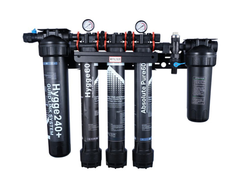 Hygge 240 Quad Link System (Hygge240TM) hybrid high flow filters are bacteria-free and highly efficient scale inhibitors, designed for multi-stage filtration processes. With a 4-stage system, they effectively reduce chlorine, taste, and odor. Engineered to deliver exceptional quality, they are ideally suited for ice maker machines and beverage applications. Offering approximately 20% better performance than competitors, the system achieves up to 99.95% removal of chlorine and chloramine from purified water used for ice production.